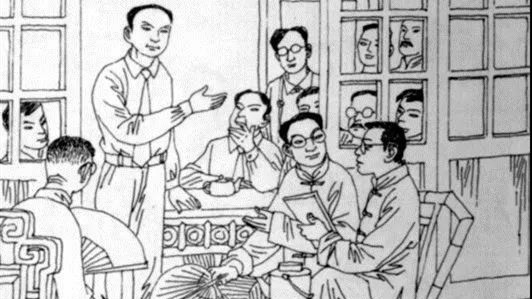 陈独秀发起成立中国共产党第一个早期组织(版画)