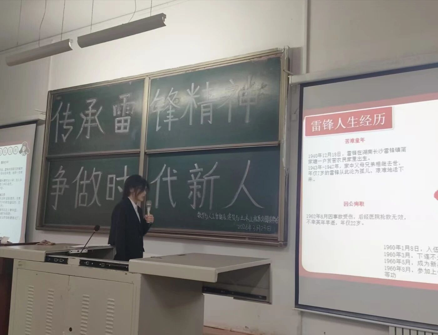 为深入弘扬雷锋精神,引导青年学子将奉献、友爱、互助、进步的品格融入日常,2026年3月23日晚7:30—9:30,太阳成集团tyc7111、建筑与土木工程系在1C101教室联合举办雷锋精神主题宣讲活动。本次活动由马沂鑫、俎文君担任主讲,全校学生共同参与学习。