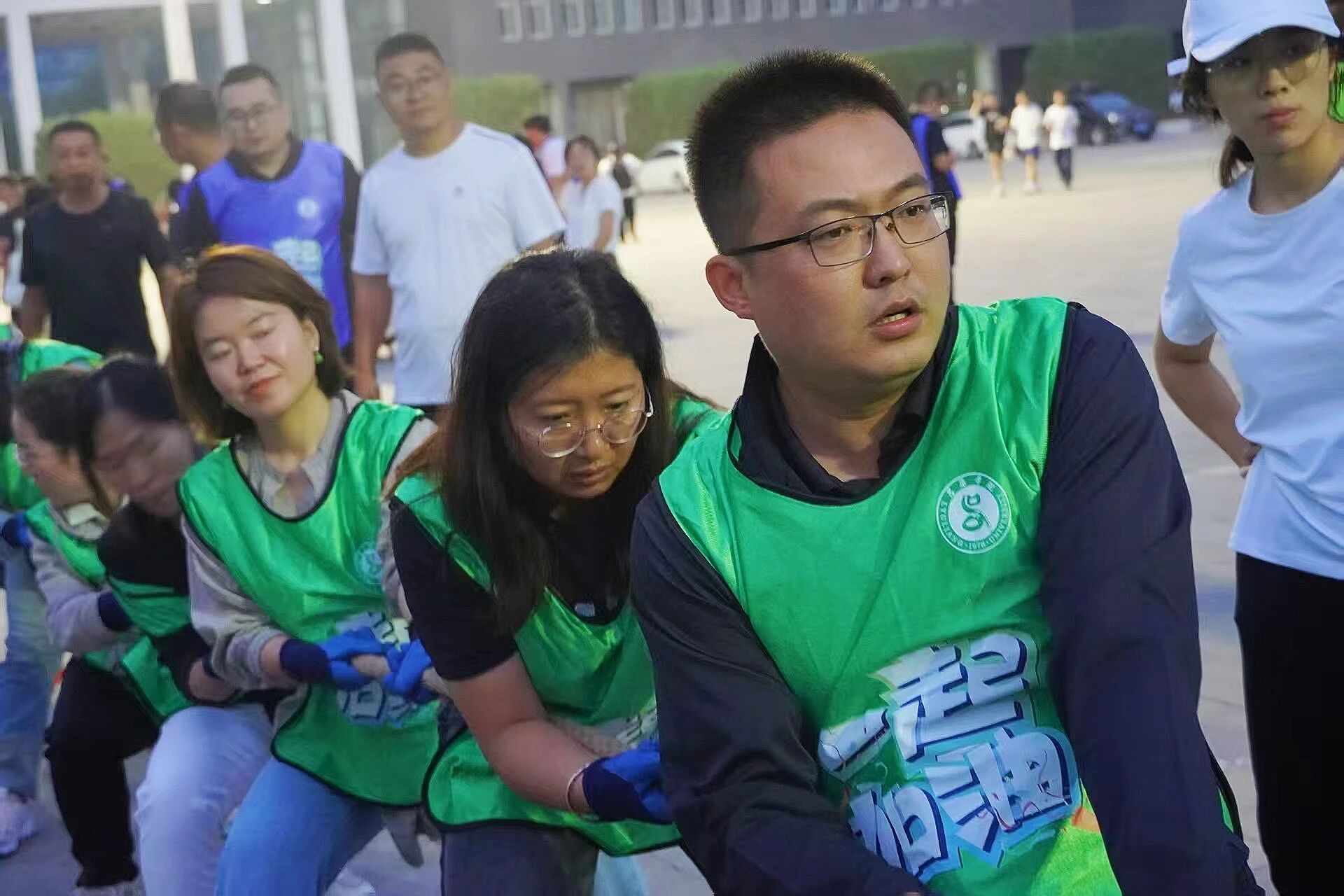整齐的号子声与绳上紧绷的红线,将赛场的紧张氛围推向高潮,图书馆的灯火为这场拼搏增添了别样的温暖底色。