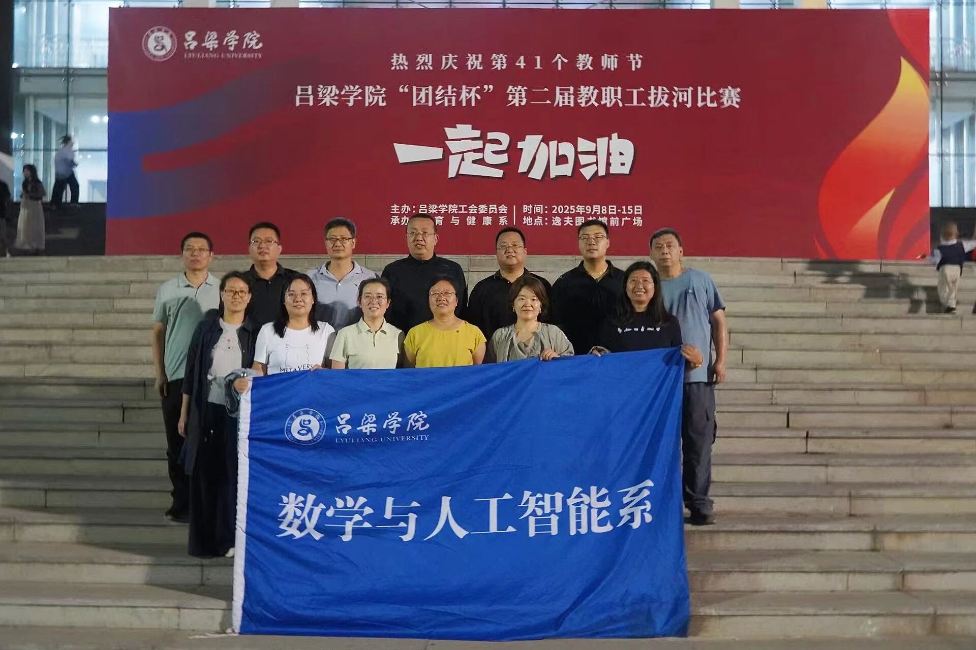 9月15日晚7时,tyc7111太阳集团逸夫图书馆门前灯火璀璨、氛围热烈,校级教师拔河决赛在此精彩上演。太阳成集团tyc7111教师代表队凭借默契配合与顽强斗志,在赛场中展现出众实力,最终收获荣誉。