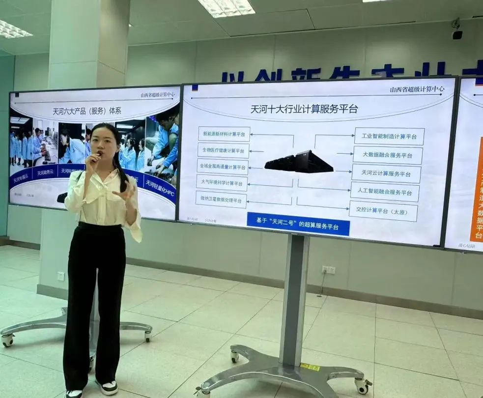 随后,师生们来到山西省超级计算中心,这里运行着强大的“天河”超级计算机系统。中心专家介绍,“天河”不仅是科研利器,更是服务经济社会发展的“超级大脑”。它支撑着从新能源新材料研发、工业智能制造优化,到大气环境精准预测、智慧交通高效管理等广泛领域的计算需求。师生们特别了解到,“天河”在关键时刻曾用于新冠病毒药物筛选等重大科研攻关。中心构建的六大产品服务体系与十大行业平台,正将这股磅礴的“计算之力”源源不断地注入山西产业转型升级的核心环节,为数字经济发展筑牢基石。