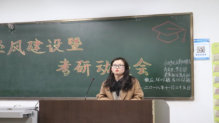 11月的吕院校园没有繁花似锦,冬日的暖阳透射着金秋的光芒。2018年11月25日19:30,数学系数学与应用数学1601、1602班在教学楼一区401教室联合举办了“因为山在那里”学风建设暨考研动员会,数学与应用数学1601、1602班全体同学,以及数学系其他班级学生代表参加会议。数学系主任刘方应邀出席并讲话,数学系青年教师刘媛媛博士作考研辅导,班主任成国栋作动员安排,山西大学研究生一年级学生冯世佳(原学长辅导员)、吕梁市发改委职员赵文睿(原学长辅导员)分享了考研心得和求职体验,考研学生代表发表考研宣言。