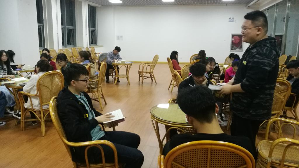 28日晚1602班如期开展了“共读一小时”读书活动,每小组派一位代表进行分享交流。