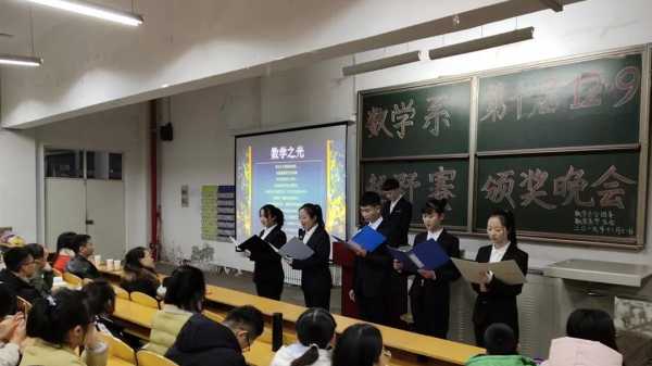12月11日晚19:30,数学系第十届“12·9”环校越野赛颁奖晚会在1C101阶梯教室举行。本届越野赛独家赞助吕梁学优教育校长贺宏伟先生,系副主任郭琳琴,李建东、樊利利、梁文静、刘慧芳老师,全体运动员,学生会全体同学共约500人参加颁奖晚会。