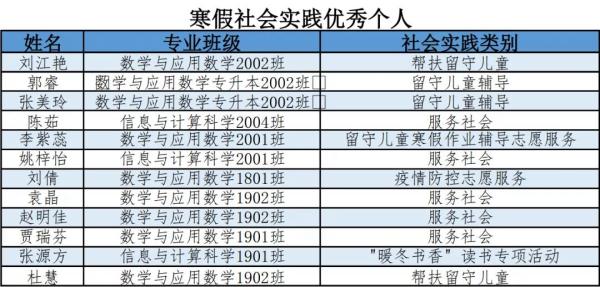 根据共青团tyc7111太阳集团委员会关于2021年大学生寒假社会实践评选的通知,我系采取由班级推荐,系部审核的方式在2021年寒假社会实践合格的同学中进行了推优评选。