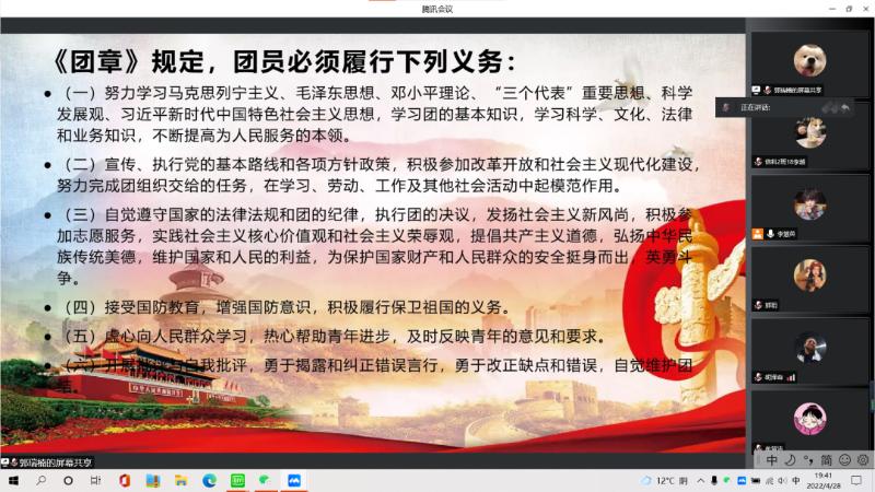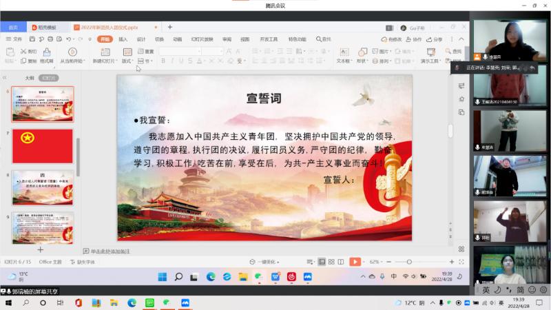 4月28日晚,数学系团总支在腾讯会议举行了新团员入团仪式。活动由团总支副书记李慧英主持,新团员入团仪式开始。