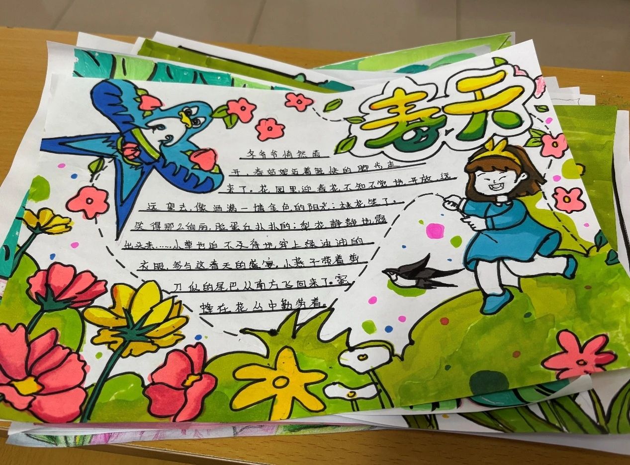 在本次活动中,同学们通过画笔,捕捉早春的灵动瞬间,征集的作品中,既有以水波荡漾为灵感的极具生命力的油画报,也有记录校园春日景色的美丽画卷;同学们用稚嫩的笔触画出抽芽的柳枝与归燕,用生动而有趣的想象力与创造力画出一副又一副春日胜景。这些手抄报不仅是艺术作品,更是一份份独特的春日观察笔记。用心描绘春天,他们就是春天!