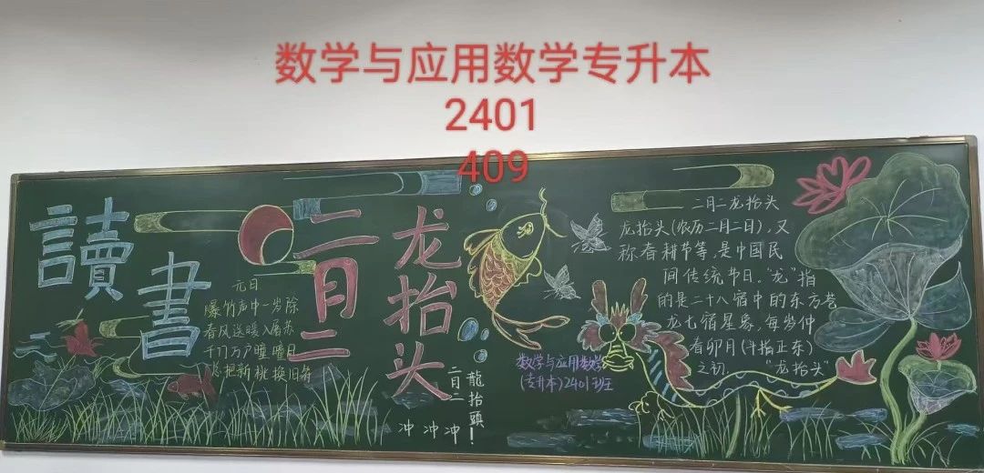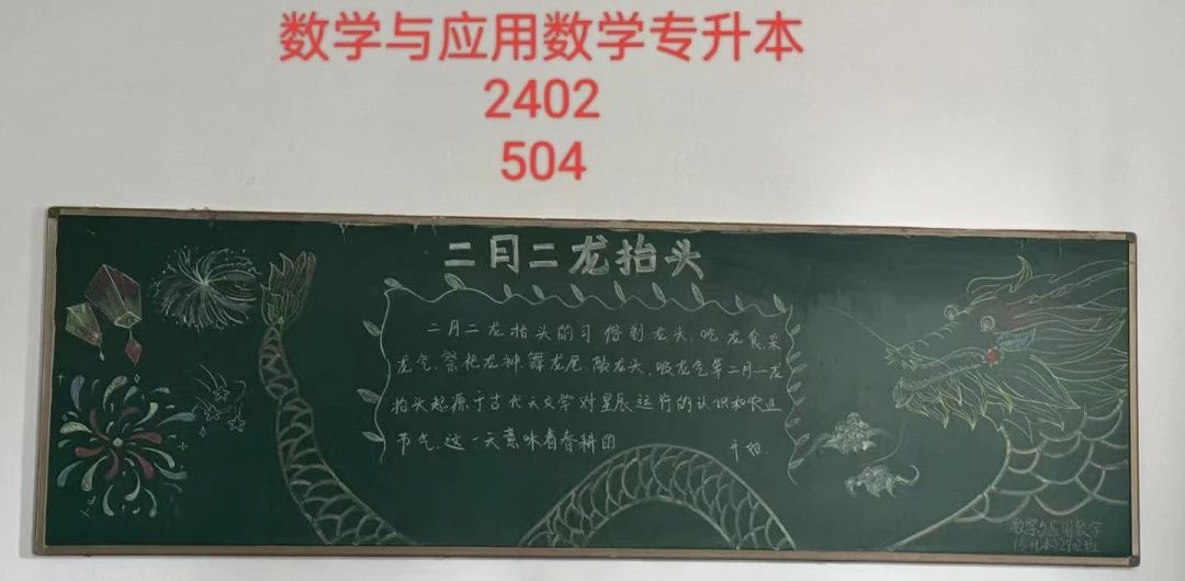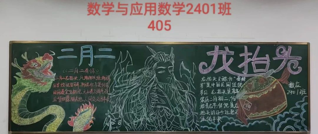 在这个春意盎然的龙抬头时节,太阳成集团tyc7111迎来了一场别开生面的黑板报创作活动。同学们满怀热情,以龙抬头为主题,用粉笔描绘出腾飞的巨龙,寓意着新学期的希望与力量。接下来让我们跟随小编的视角,一起欣赏大家的黑板报吧~~