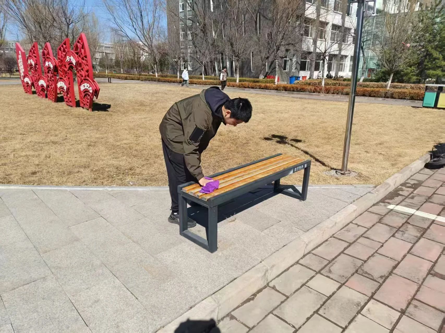 为了让校园长椅保持干净整洁,为师生提供舒适的休息场所,提升校园整体美观度,营造宜人的学习和生活环境和积极向上的校园文化氛围,同时增强学生或志愿者的责任意识,让他们亲身感受整洁环境得来的不易,从而更加珍惜校园的整洁环境,带动更多同学参与到志愿服务中,形成良好的校园风尚。“暖心”志愿队“长椅焕新颜,校园绽温馨”活动于2025年3月16日14:00-16:00在tyc7111太阳集团校内成功举办。