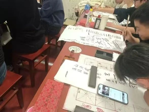 在演示三指执笔法时,同学们专注地观察,随后纷纷低头调整握笔姿势,相互交流、纠正。互动交流环节,同学们热情高涨,纷纷分享自己的感悟。在老师的悉心指导下,同学们渐入佳境,毛笔字愈发工整美观,笔画刚劲有力,结构匀称协调。老师在课中讲到:毛笔书法的每一个动作,皆蕴藏着古人的深邃智慧,希望同学们悉心揣摩,精准展现出毛笔书法的独特韵味 。