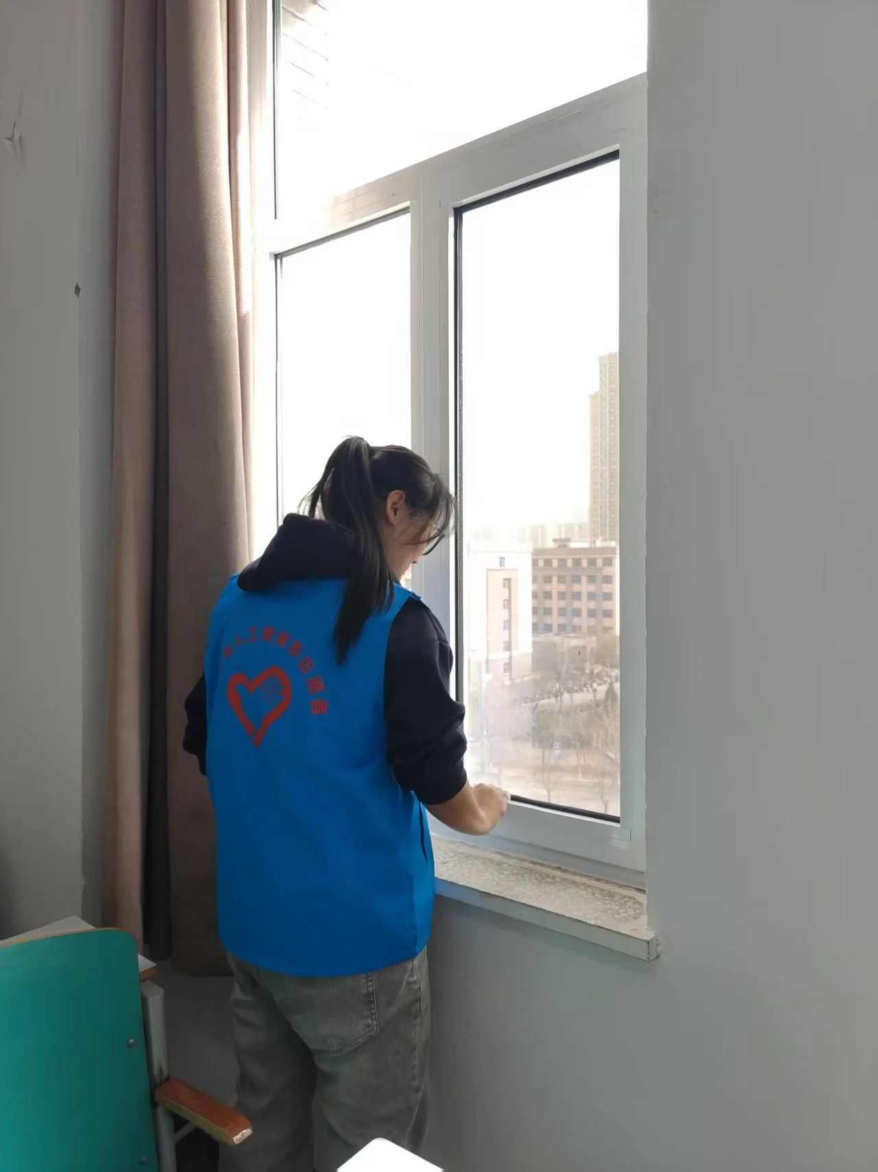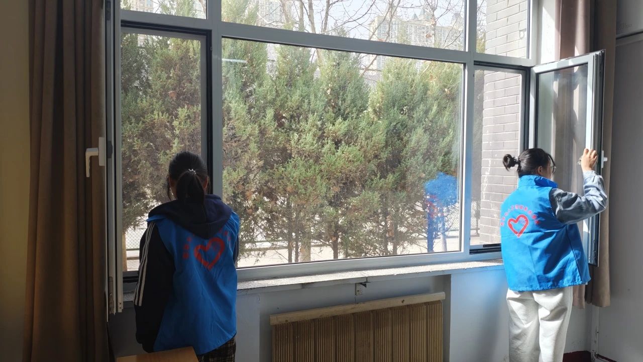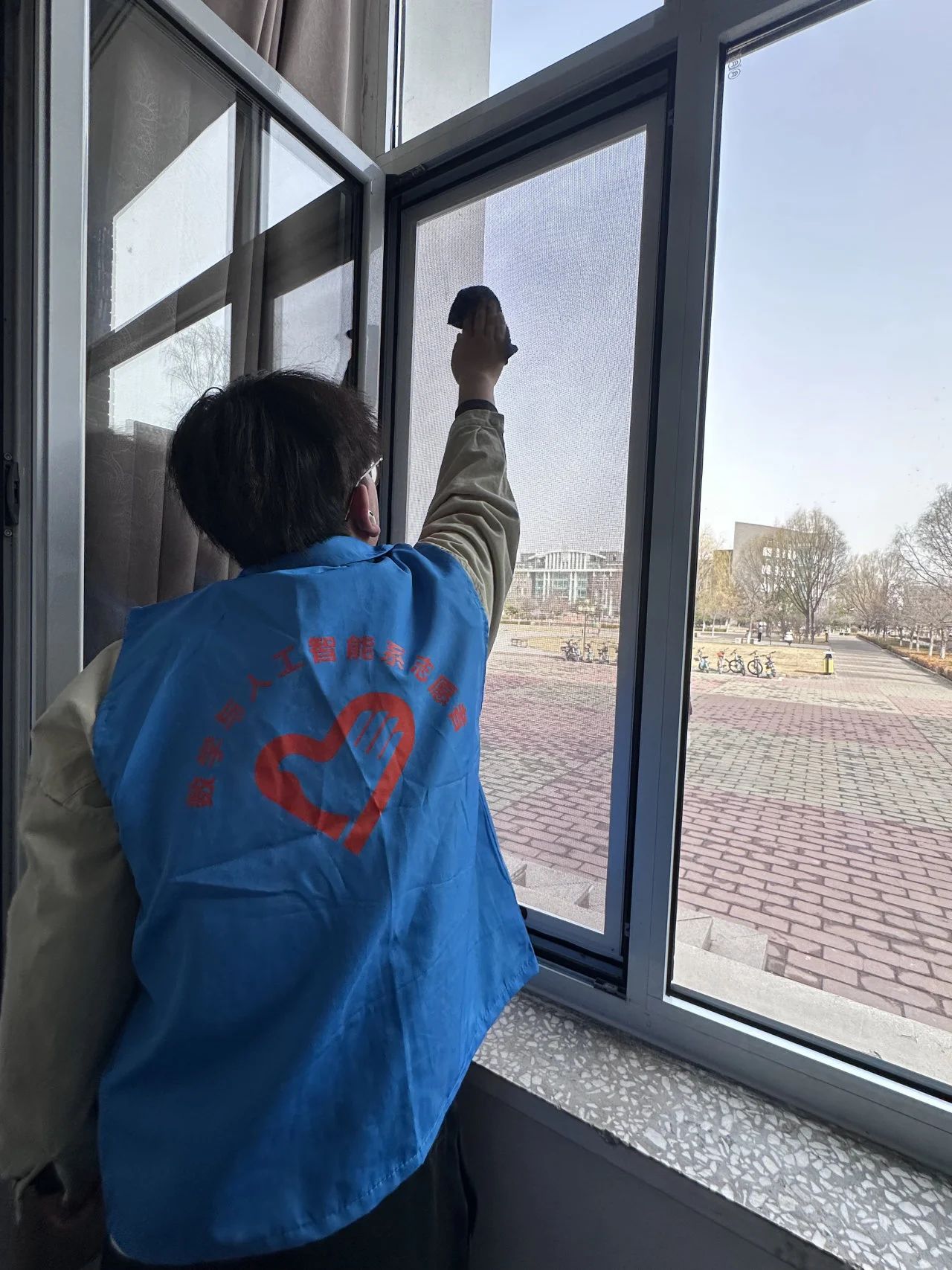 在志愿者们的努力下,校园环境迎来了华丽蜕变。曾经积尘的纱窗变得洁净如新,阳光透过,映照出五彩光芒;布满污垢的暖气也重焕光彩,仿佛在诉说着这场温暖的“重生”故事。整个校园洋溢着清新与活力,为师生们营造出更加舒适、宜人的学习和工作环境。