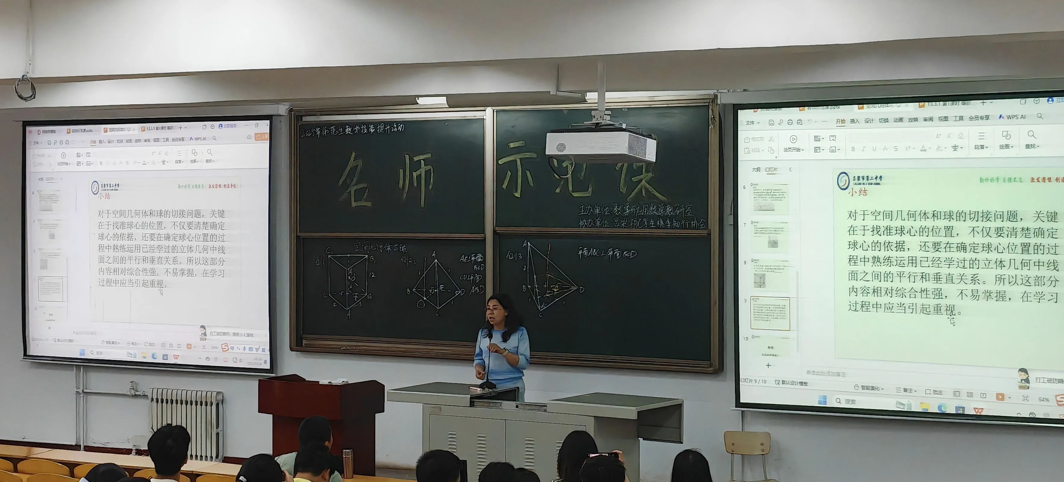 课堂上,冯娜娜老师以一段妙趣横生的故事作为开场,瞬间点燃学生求知热情,将大家带入知识的奇妙世界。舒博老师则灵活运用多样化教学方法,通过循循善诱的引导,激发学生自主思考,课堂上思维火花不断碰撞。两位老师巧妙融合现代信息技术与传统教学手段,借助多媒体课件将抽象知识具象化,依托在线互动平台实现即时学情反馈,精准把握教学节奏;同时,工整且富有逻辑性的板书梳理出清晰的知识脉络,传统与现代的有机结合,为课堂注入全新活力。