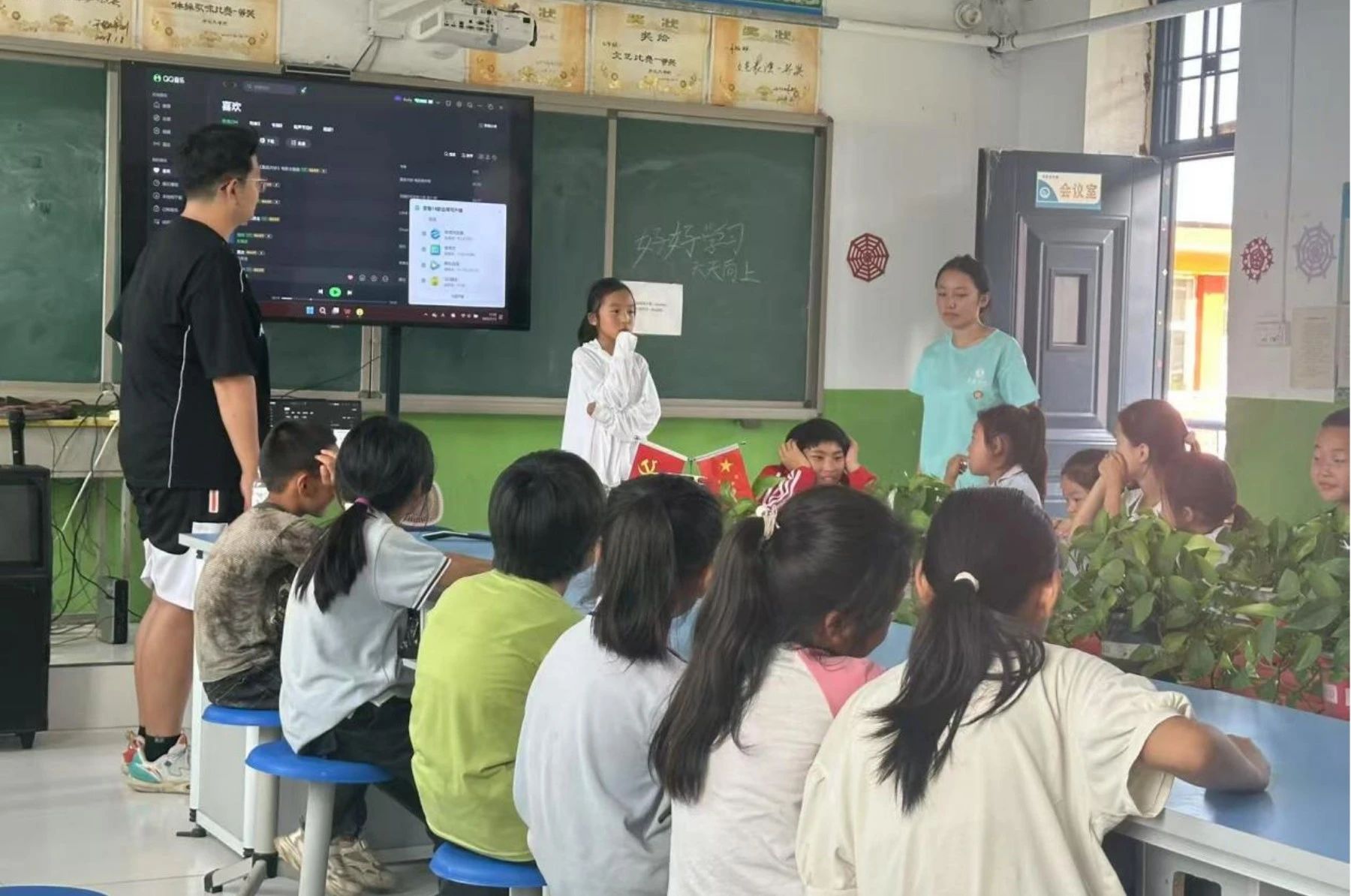音乐教室里,悠扬的童声回荡。孩子们在老师的带领下学唱《让我们荡起双桨》,稚嫩的嗓音里充满对音乐的热爱。一位男孩悄悄说:“我长大想当歌手,今天终于敢大声唱歌了!”同样令我动容的是另外一个一年级的小女生,当志愿者们在问是否有人愿意主动上台表演时,那名小女孩举起她纤细的手臂说道:老师我想上台唱歌。当她一曲唱完,台下亦响起雷鸣般的掌声。简单的课堂,成了他们放飞想法的舞台。