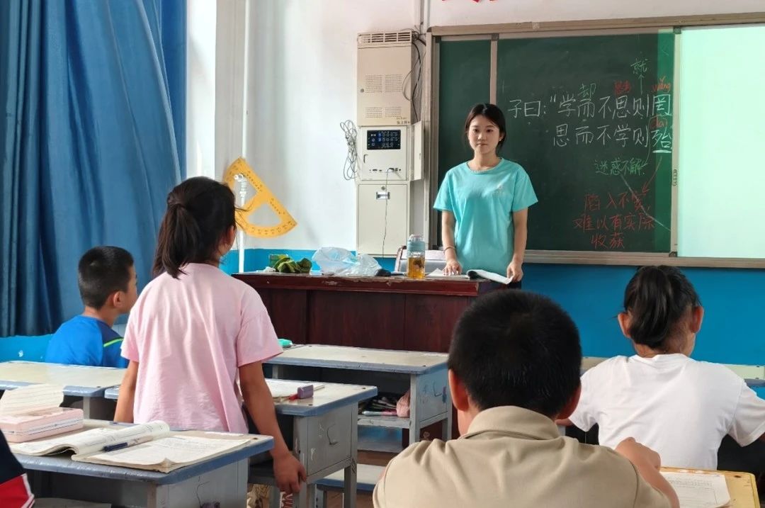 课堂上,老师先讲了两个小故事:一个孩子只背书不思考,很快遗忘;另一个只空想不学习,想法皆错。故事吸引了孩子们。随后,老师写下古语并逐字讲解,称“学”是吸收知识,“思”是动脑解惑,还以“吃饭不消化”“盖房没砖”作比,强调学思结合的重要性。