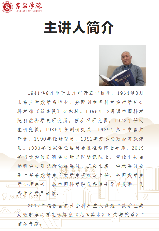 学术讲座:《中国古典数学理论体系奠基者刘徽》——郭书春