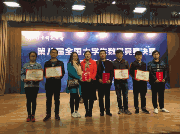 3月17日—19日,由中国数学会主办,北京科技大学承办的第八届全国大学生数学竞赛决赛在北京科技大学举行。本届全国大学生数学竞赛共有28个赛区85797人报名参赛。经过预赛,有274名学生进入决赛,其中,数学专业组94人,非数学专业组180人。经过激烈角逐,张钺等15位同学获得数学专业高年级组一等奖;余佳弘等9位同学获得数学专业低年级组一等奖;何翎申等47位同学获得非数学专业组一等奖。此外,组委会还授予陕西赛区等单位“优秀组织奖”。