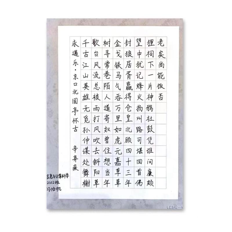随后,同学们跟随老师娓娓讲解,细细鉴赏了硬笔字规范字帖,又与老师一道,就章法、结构、笔画对7副获奖作品的优长和不足进行一一点评,张老师及时示范下笔如神,加深了同学们对字形、笔画的记忆。