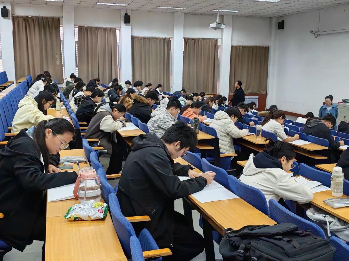 考场上,参赛学子们沉着冷静、专注作答,时而凝神思索,时而挥笔疾书,在规定时间内从容应对涵盖高等数学、线性代数、数学分析等核心内容的竞赛题目,充分展现了扎实的数学功底、严谨的逻辑思维和高效的问题解决能力。监考老师们认真履行职责,严格执行考场纪律,全程保障赛事的规范开展。